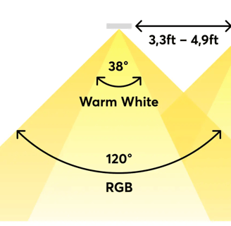 The concern I have, then, is that the documentation notes that the white part is emitted over a 38 degree angle, while the color parts are emitted over a much wider angle (120 degrees). Thus, near the 'fringes' of the illuminated area, you should get only the red/blue light, without any of the white. This seems like a poor overall design, as you'll get uneven lighting.